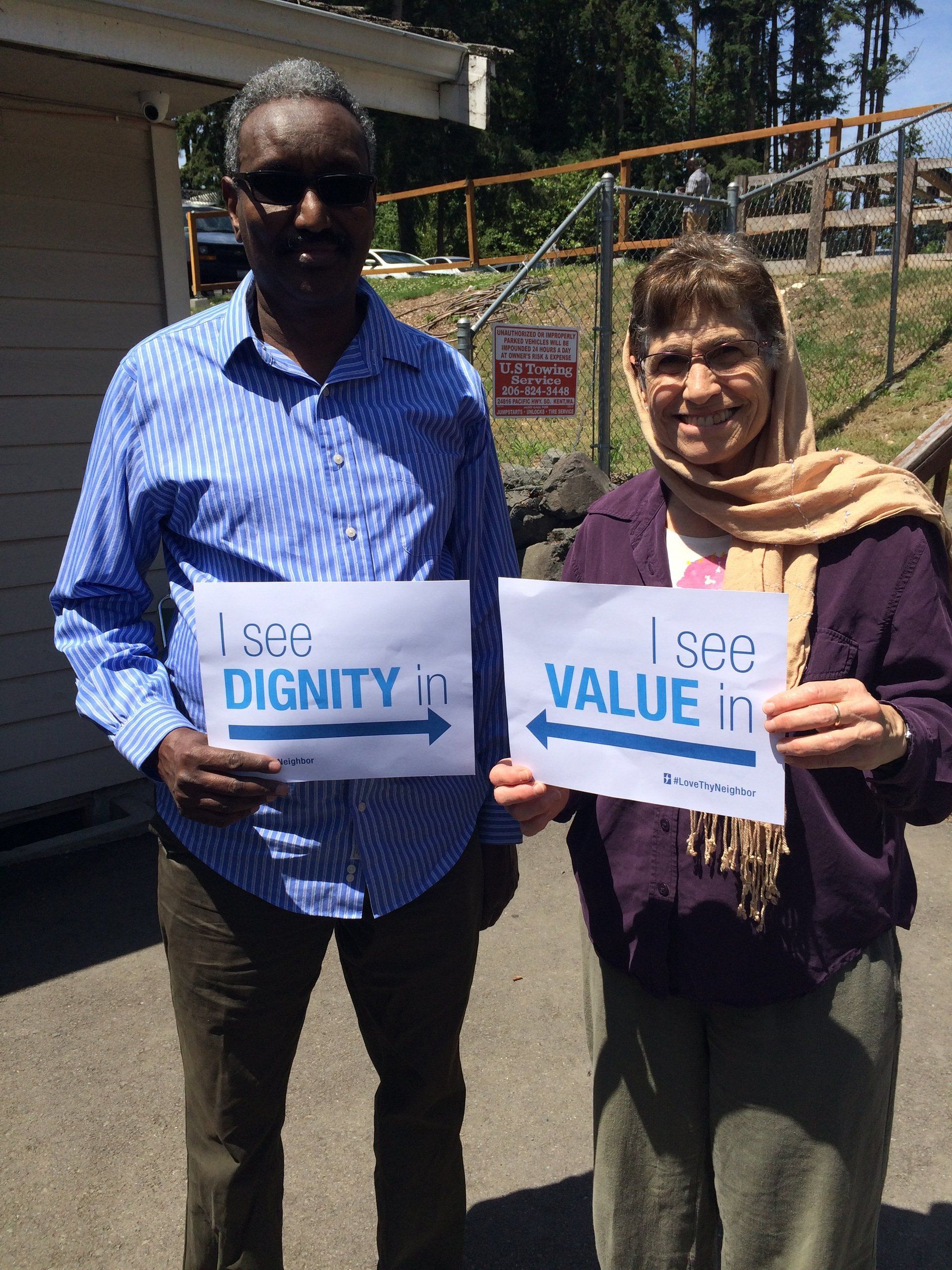 Seattle Community Quakers took the message of #LoveThyNeighbor (No Exceptions) to the local Islamic Center to show their support after a number of mosques in the area had been threatened. Read about the event in The Seattle Globalist feature.